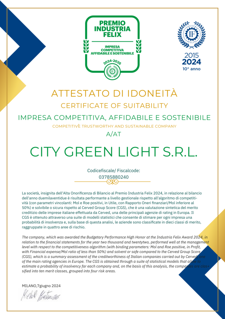 Questo nuovo e importante riconoscimento conferma il nostro impegno nel garantire elevati standard di affidabilità e sostenibilità, alimentando la nostra determinazione nel costruire un futuro sempre più solido e sostenibile.