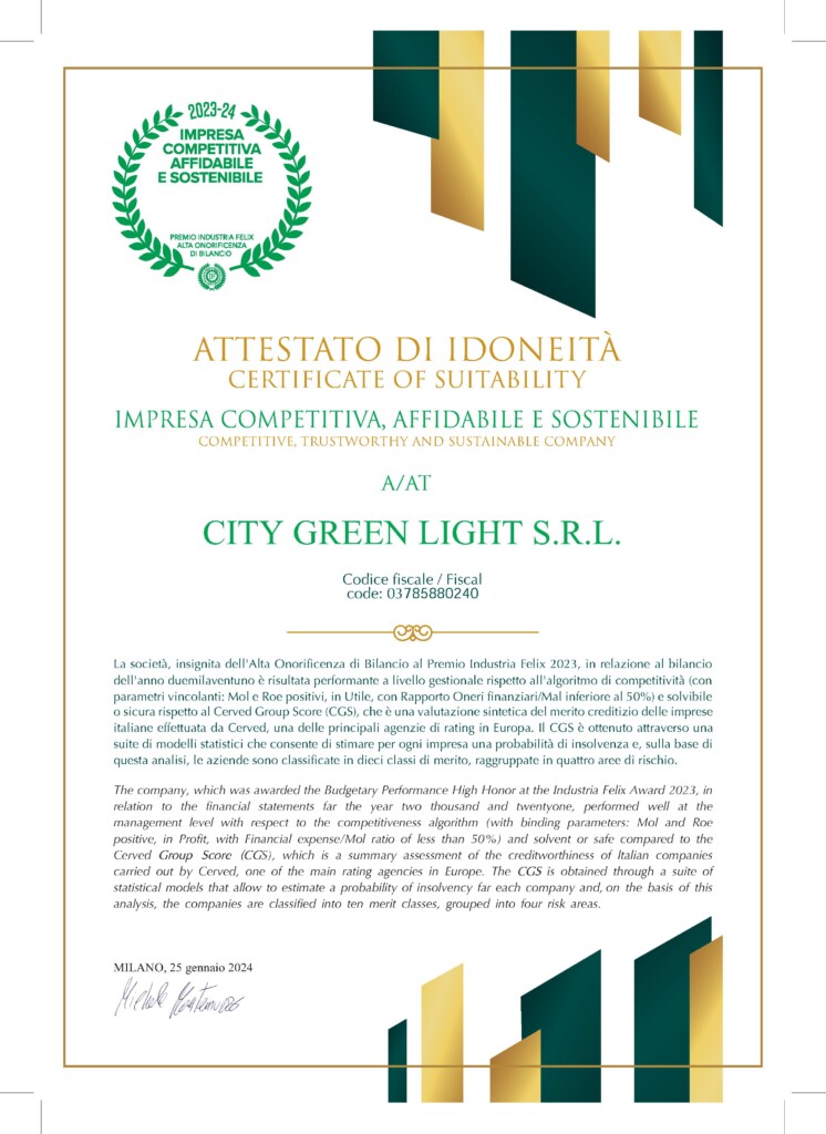 City Green light riceve il riconoscimento industria felix – l’italia che compete